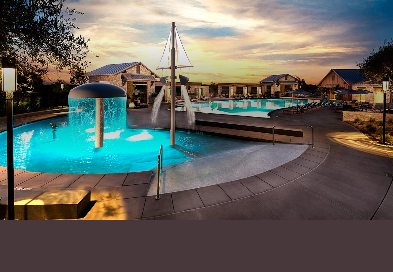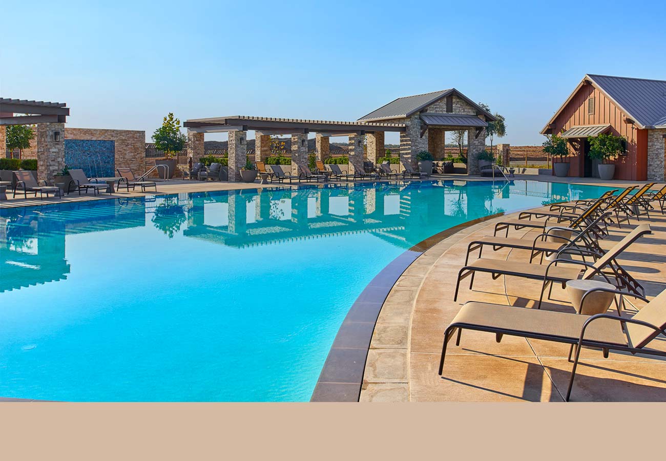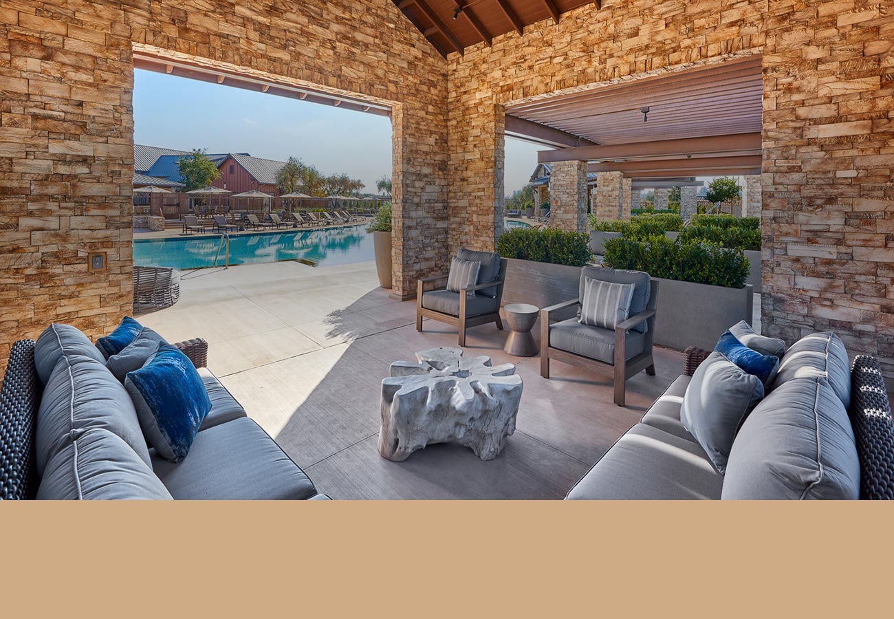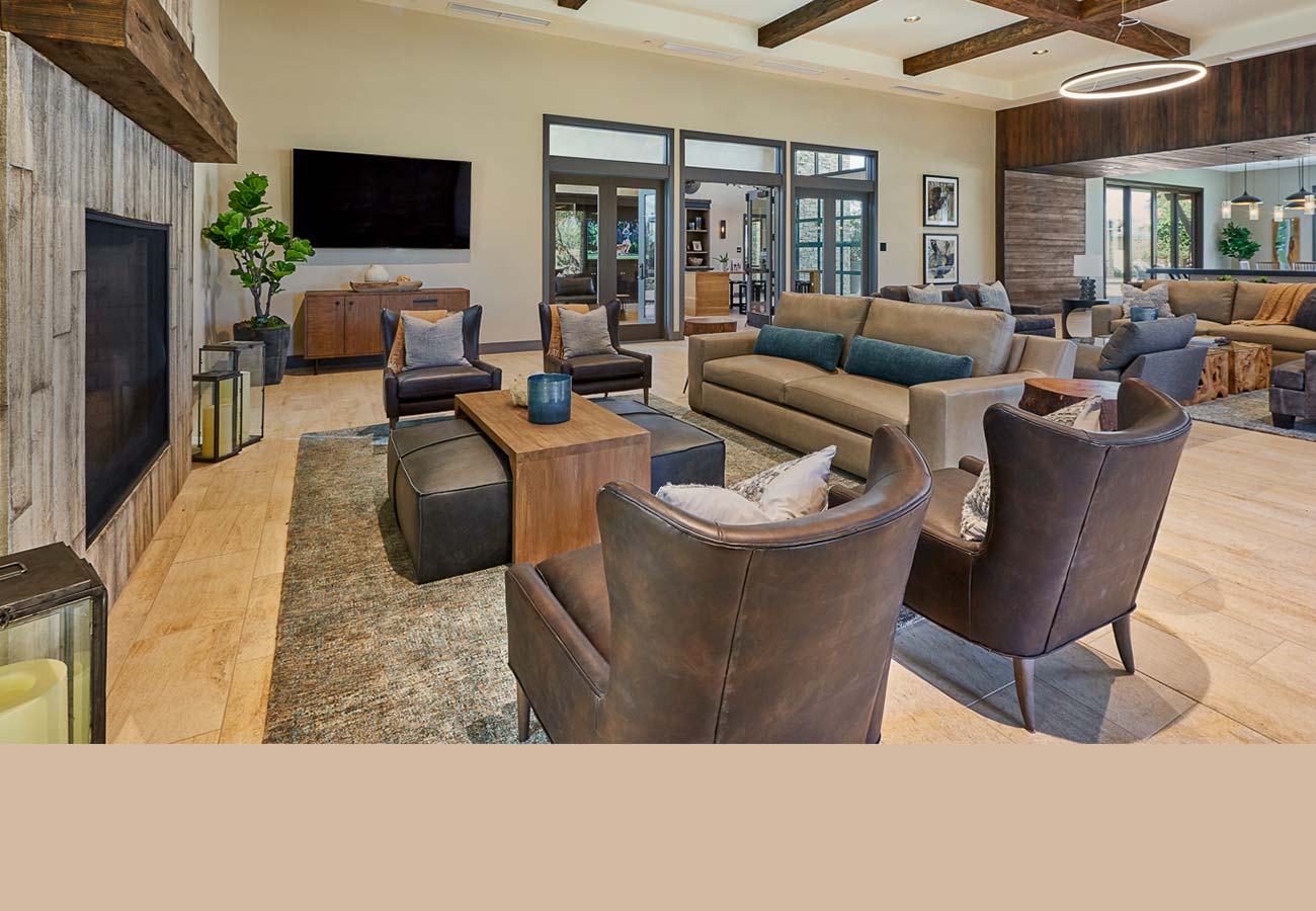 The contemporary architecture of The Lodge at Riverstone is called “deconstructed agrarian industrialism.” But you’ll call it the coolest hangout—ever. Combining the rusticity of farm with the magnificence of the west’s National Park lodges, this truly one-of-a-kind venue is comfortable enough to call your second living room. Within its grand interior are a state-of-the-art fitness center, flexible spaces for gatherings and events, and much more. Just outside is comfortable seating around firepits and a terrace revealing a sparkling pool, spa, cabanas and a refreshments bar.